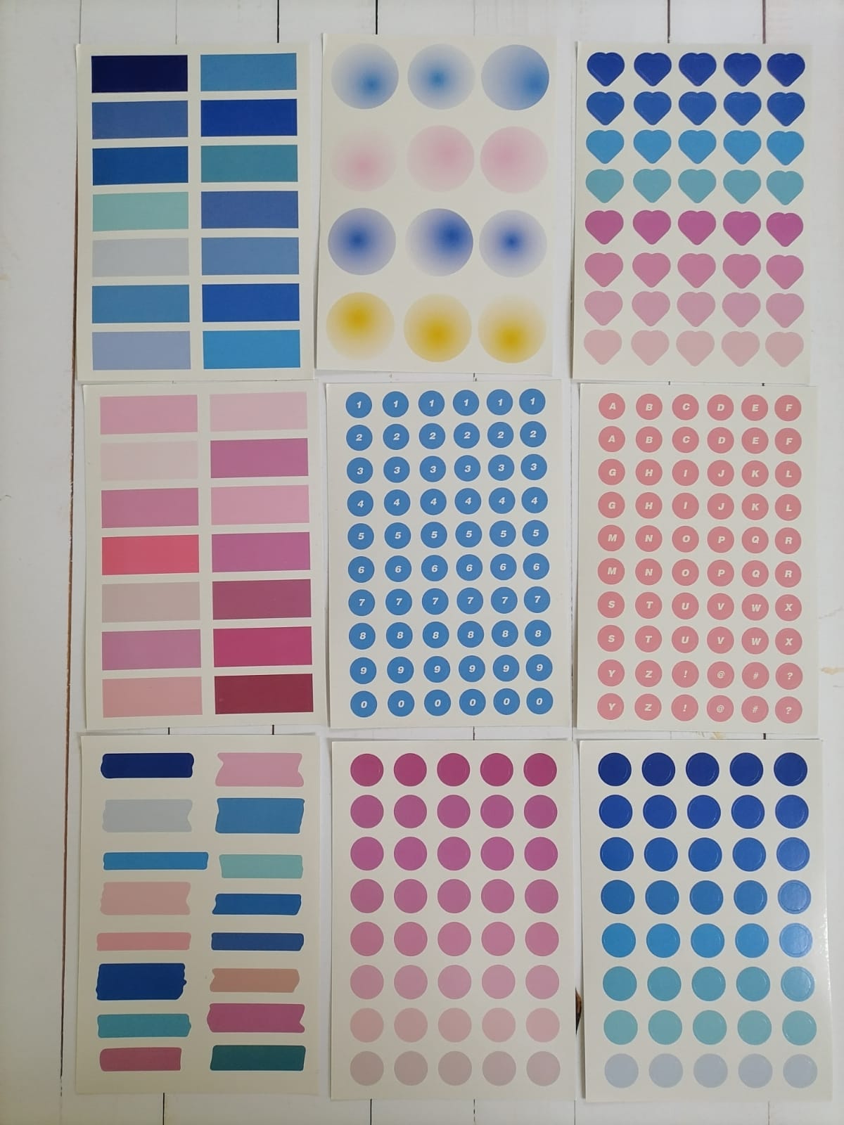 We can always use some of these basic shapes in our planners to highlight and mark and decorate. There are 9 sheets in a set and the sheets measure 11 x 16cm
