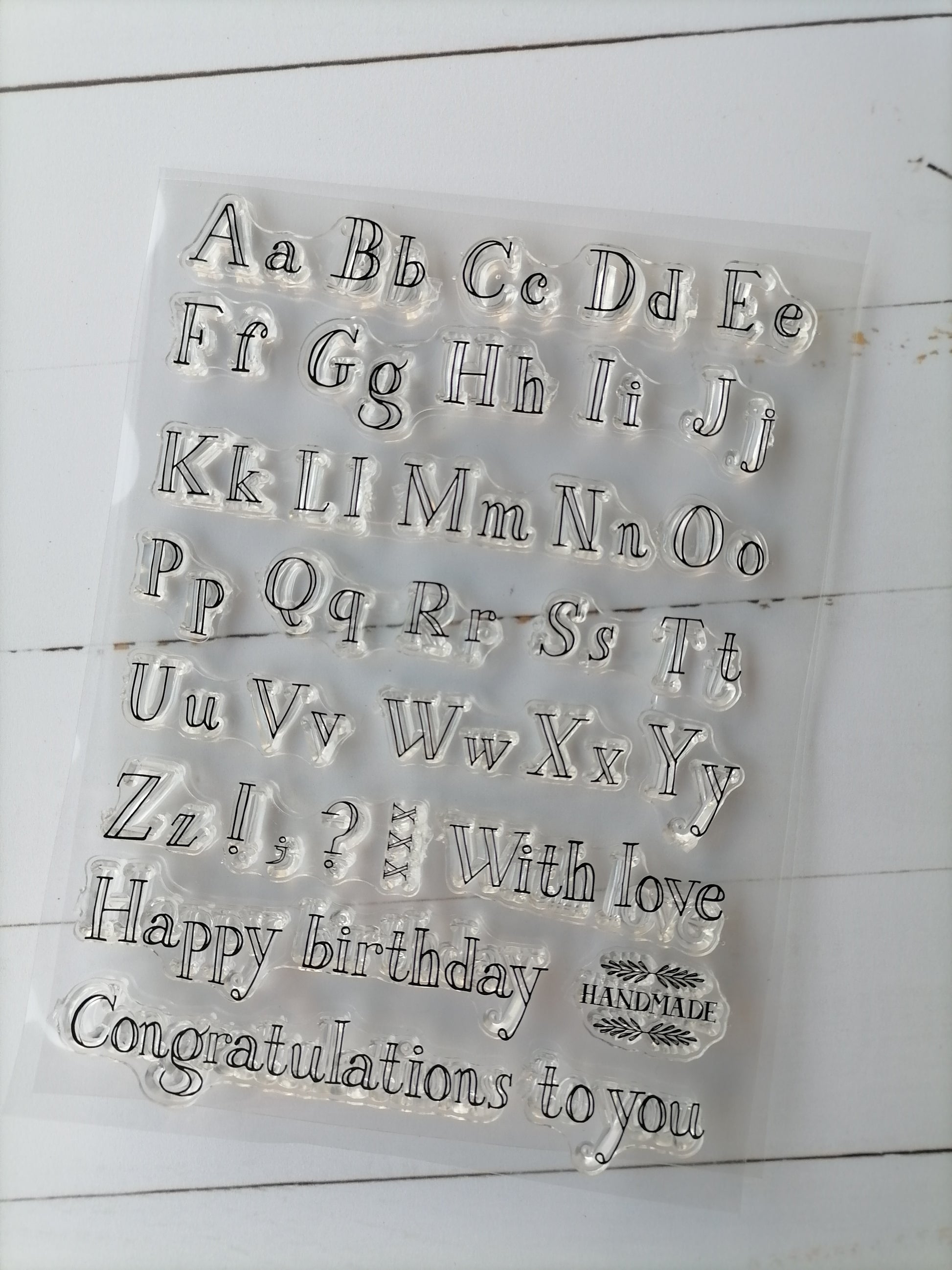 The 'Small solid font' stamps and the 'Small font and sentiments' stamps are smaller and measure 11 x 16 cm, the other stamps measure approximately 14 x 18cm
