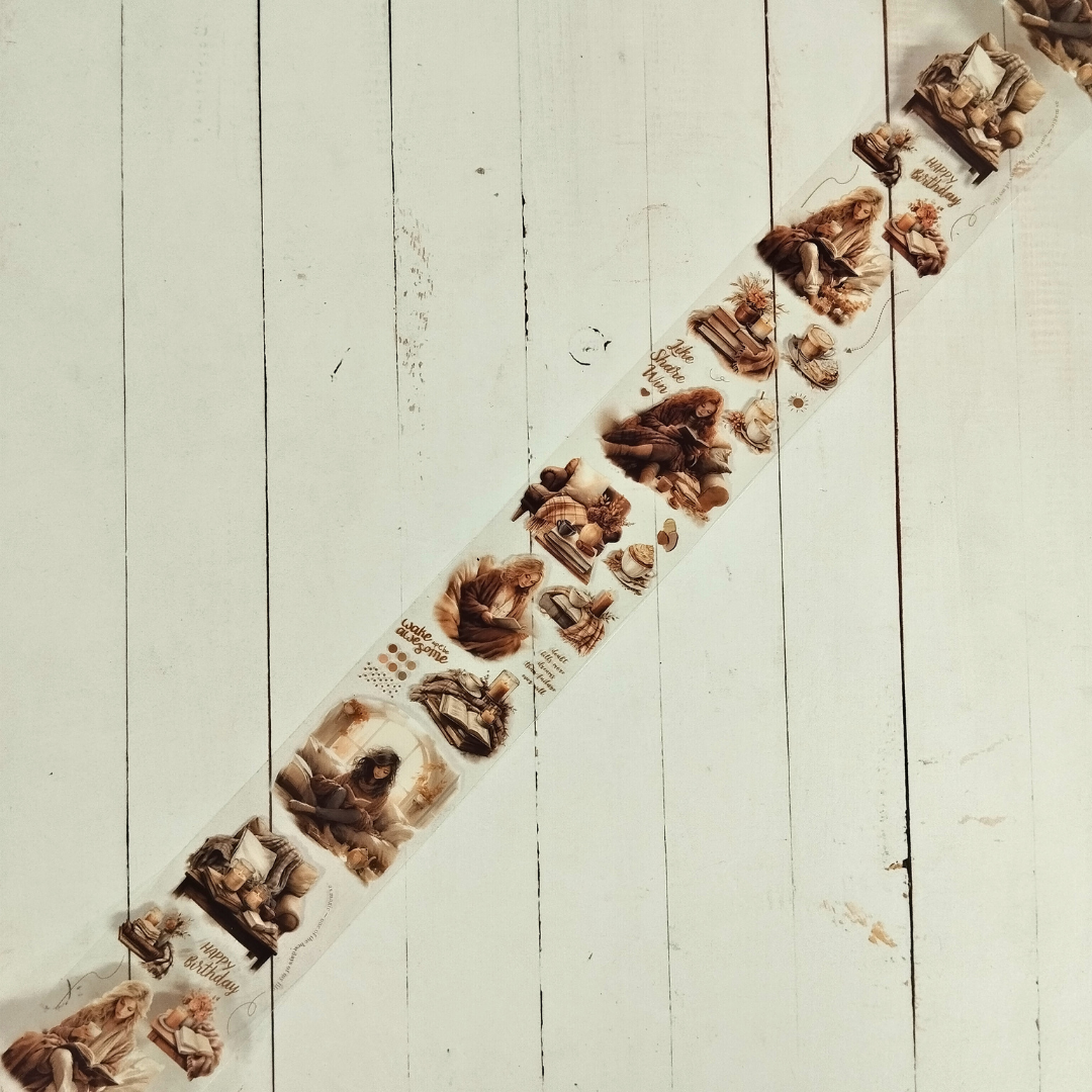 Designed for maximum versatility and creativity. This 2-meter long, 6cm wide PET tape comes with backing paper, allowing you to use it as a regular decorative tape or to fussy cut the designs you love and use them as stickers. Perfect for bullet journaling, scrapbooking, and various DIY projects, this washi roll is a must-have for any creative enthusiast.