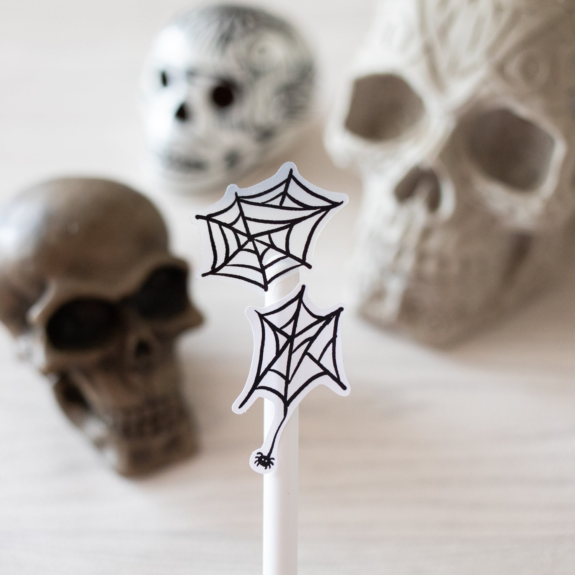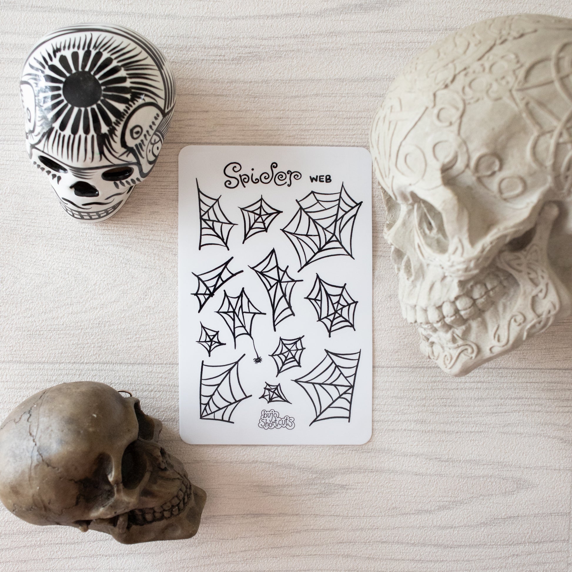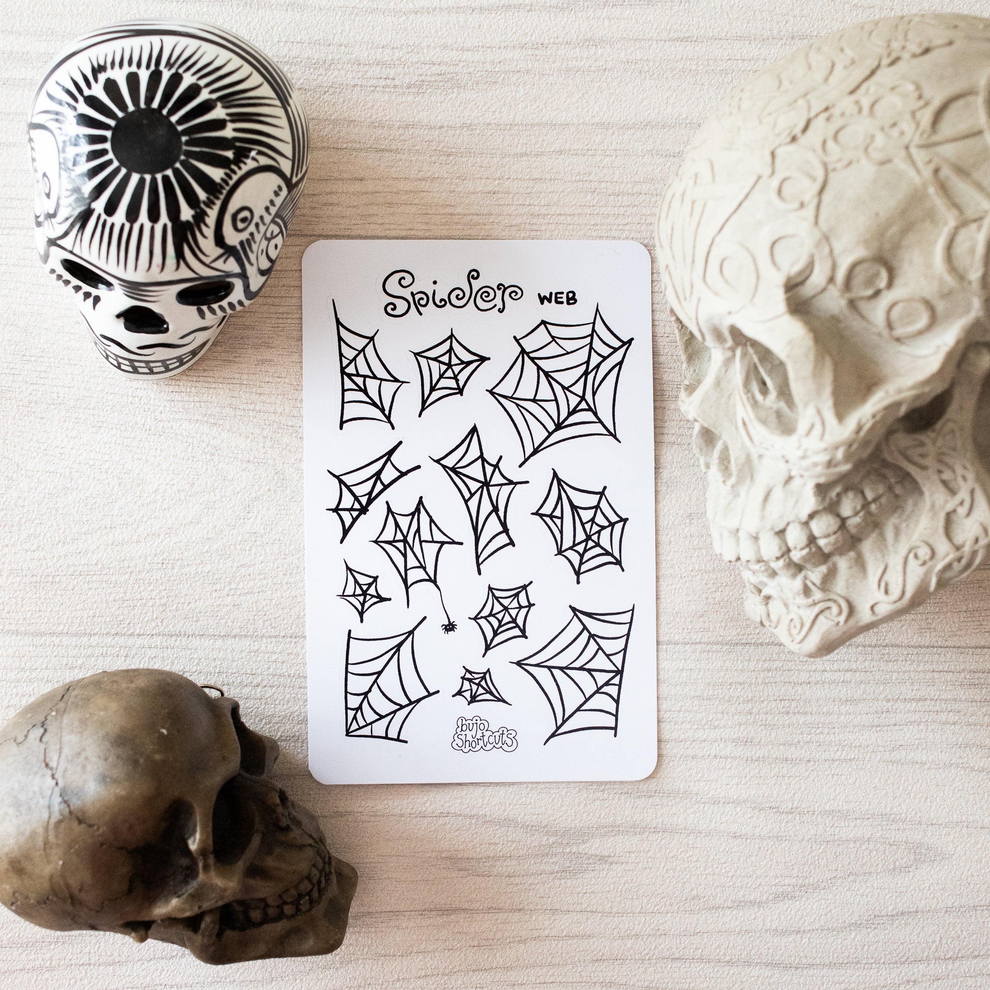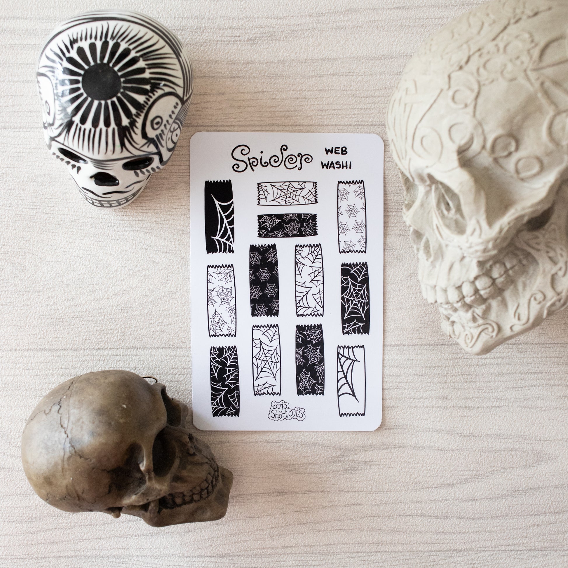 Bring modern flair to your planners and journals with our Procreate-drawn Halloween sticker sheet. Featuring digitally-designed skulls , webs and pumpkins, these stickers offer a cute and spooky look to decorate for Hallowed.