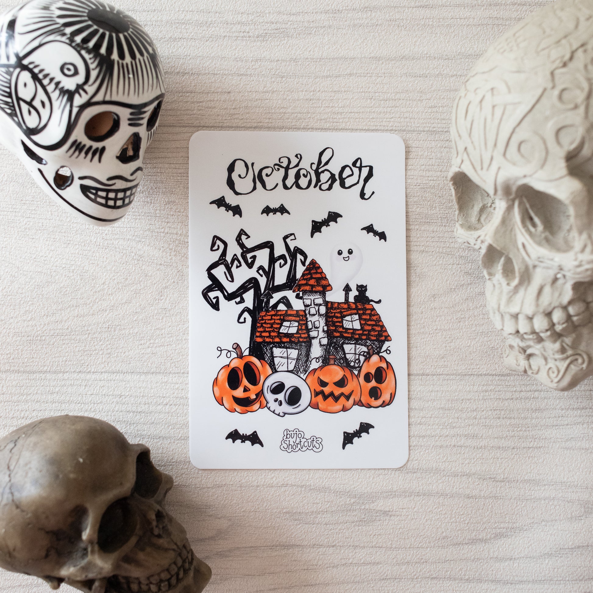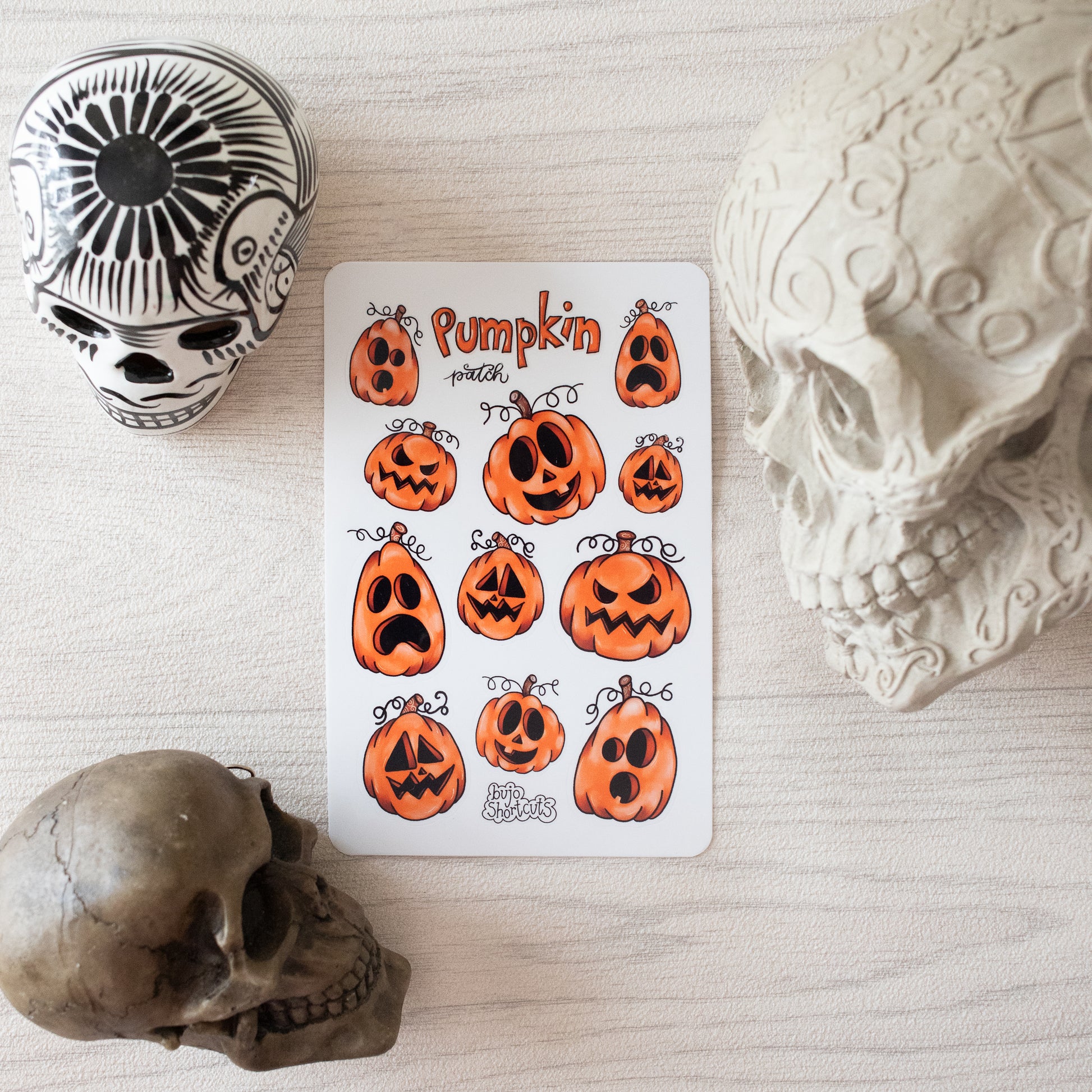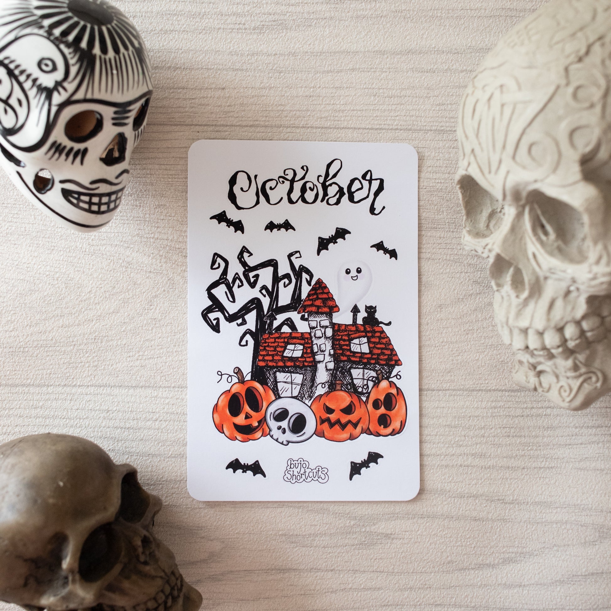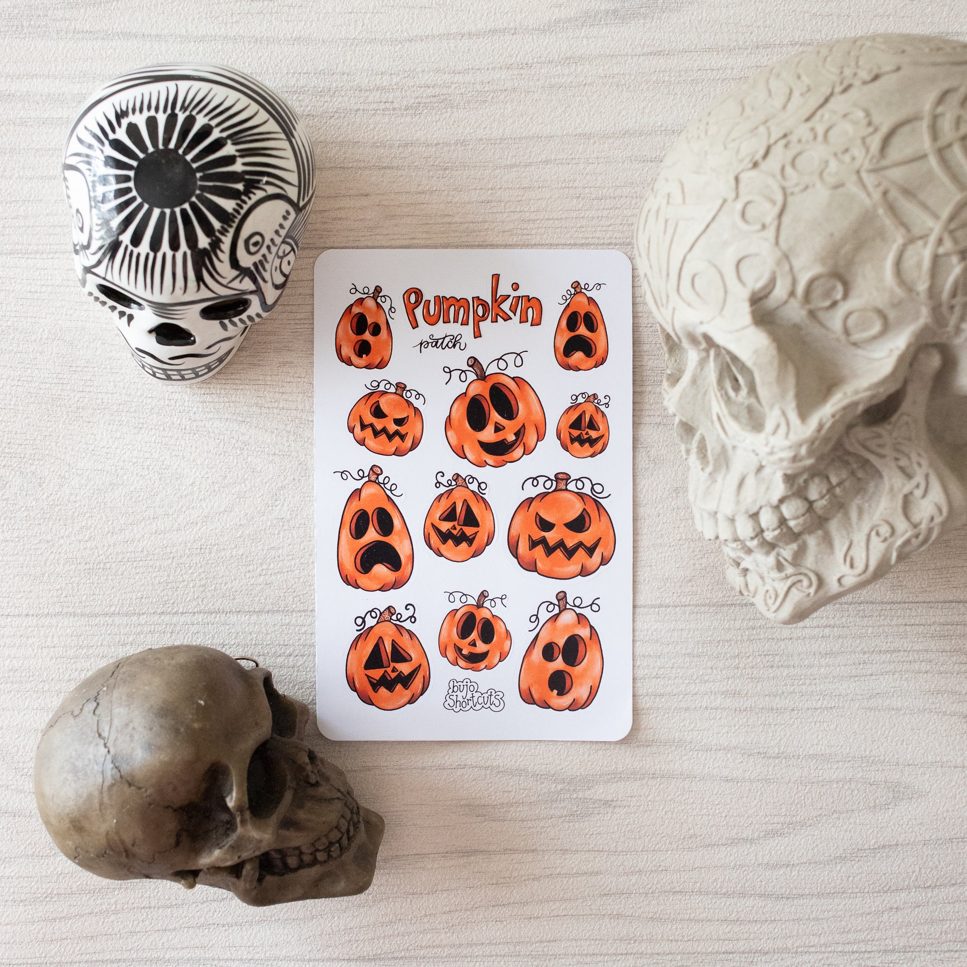 Bring modern flair to your planners and journals with our Procreate-drawn Halloween sticker sheet. Featuring digitally-designed skulls , webs and pumpkins, these stickers offer a cute and spooky look to decorate for Hallowed.