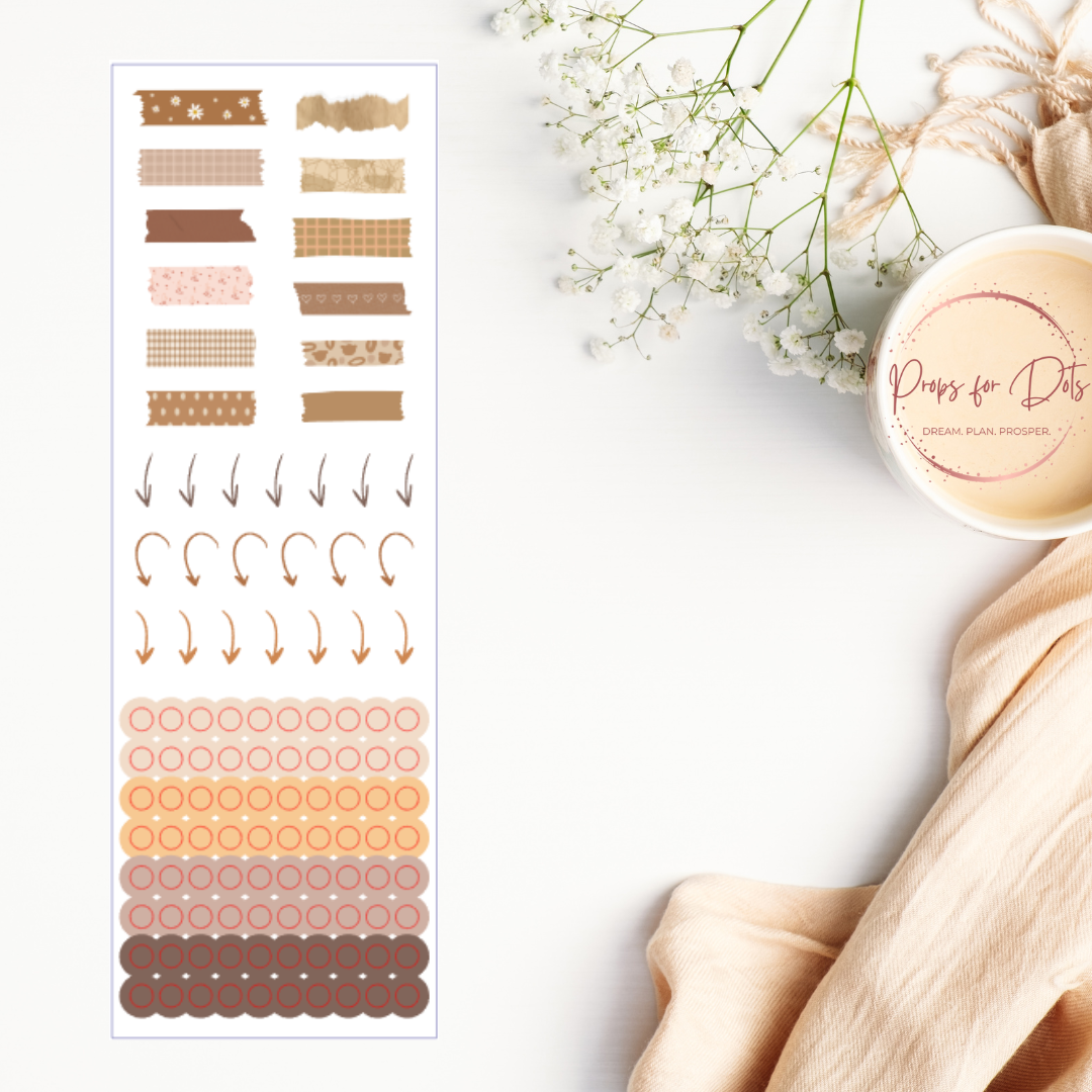 ✔ Functional Sticker Sheet – Mini dots, arrows, and washi strips for marking important notes, events, and reminders.