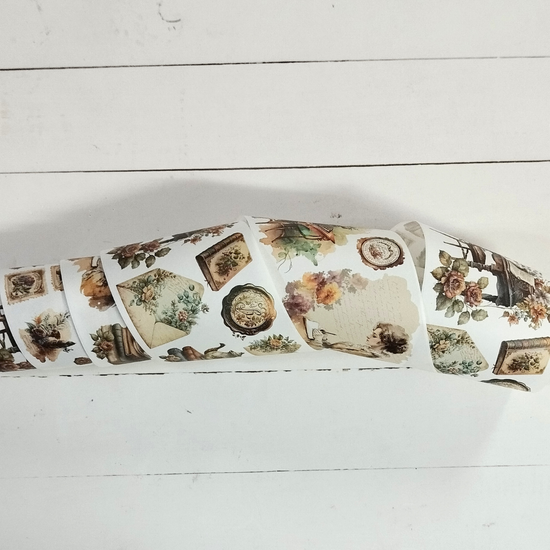 Step into a world of elegance with our Rose Garden Vintage Washi Tape. This 2-meter roll, 5cm wide, features a backing paper that allows you to use it as traditional washi tape or fussy cut the beautiful images to create custom stickers. Adorned with vintage-inspired designs of books, letters, stamps, and more, all with a charming floral touch, this tape is perfect for bullet journaling, planners, and all your creative projects. Add a touch of timeless beauty to your creations with this versatile washi tape.