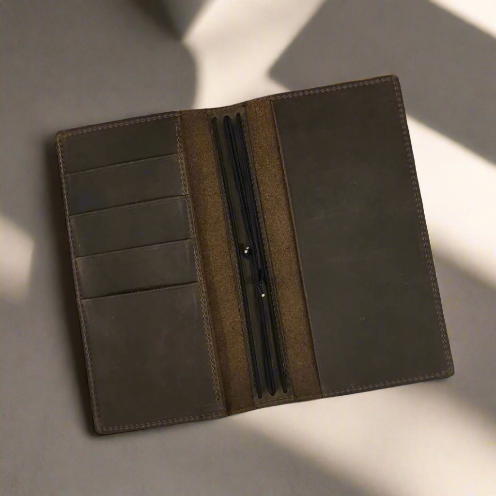 With its unlined interior and unfinished edges, The Raw develops a unique patina over time, telling the story of every journey it takes with you. Inside, you'll find a full-length straight pocket at the front, plus two to three vertical card pockets (depending on the size) to keep essentials close at hand. A matching full-length pocket at the back offers additional storage.