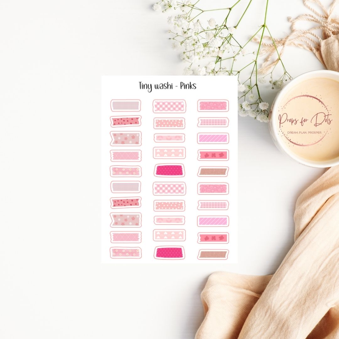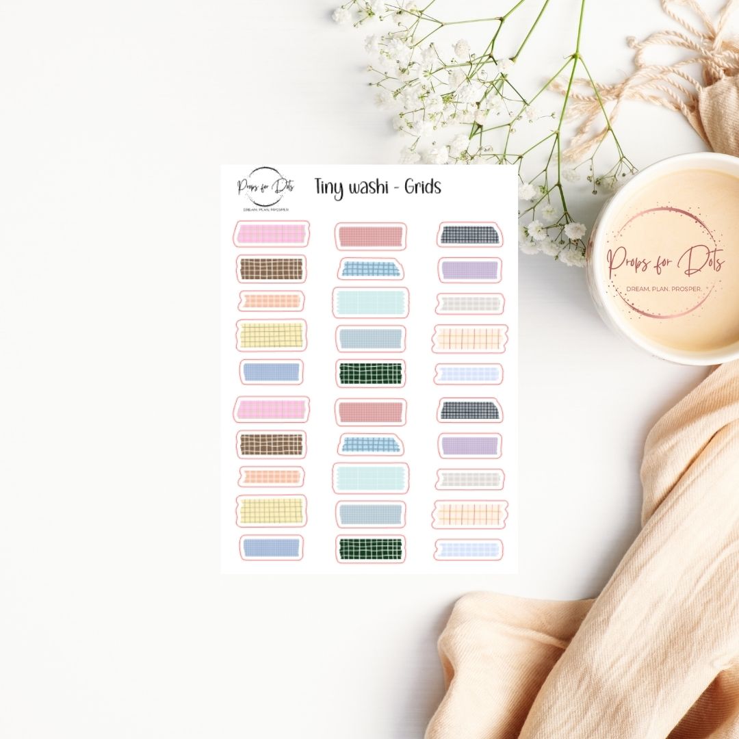 Add a dash of charm and creativity with our Tiny Washi Stickers. These petite stickers bring a decorative touch to your planner or journal, perfect for headers, borders, or little accents.