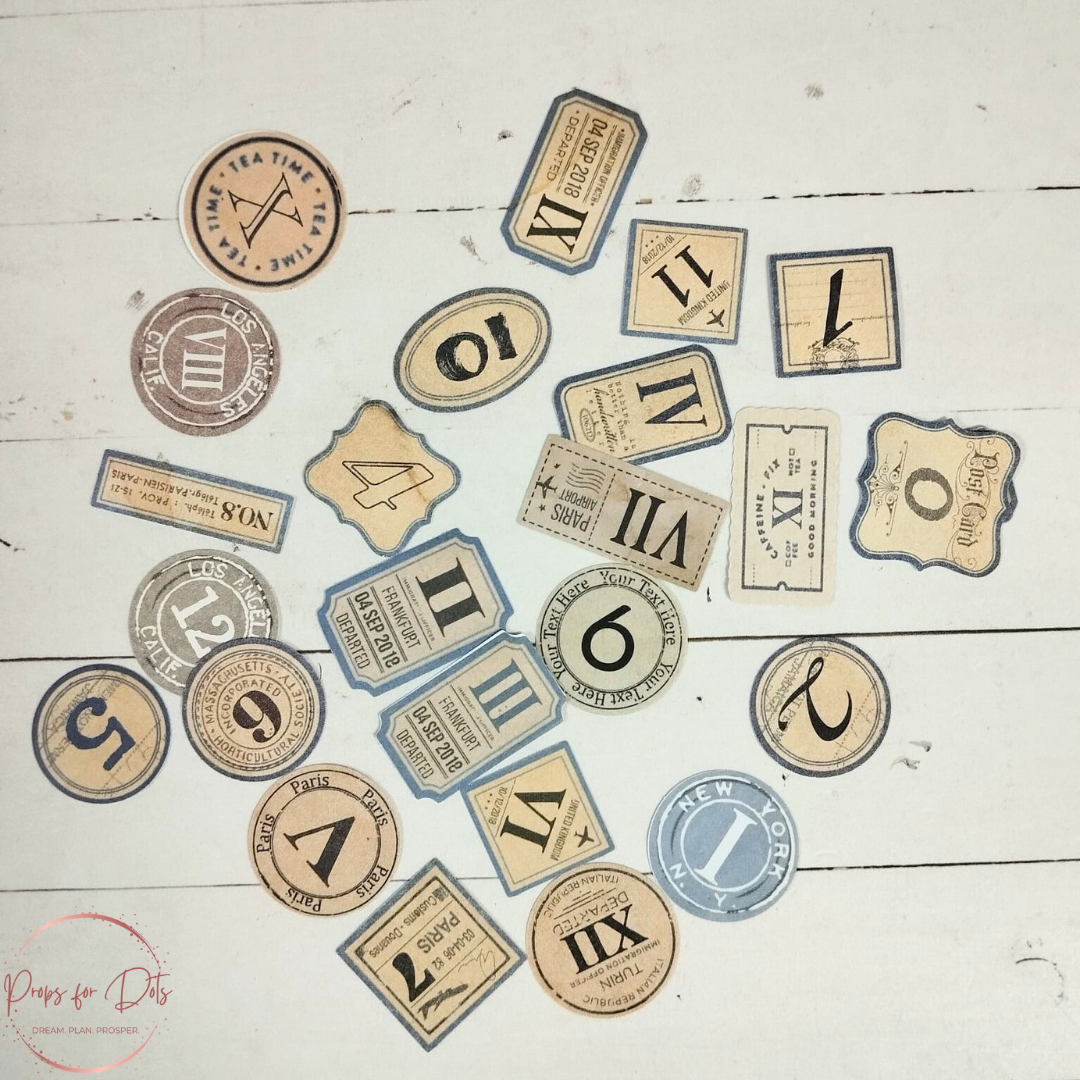 - Vintage Charm: A mix of vintage labels, ticket stubs, and numbered dates.