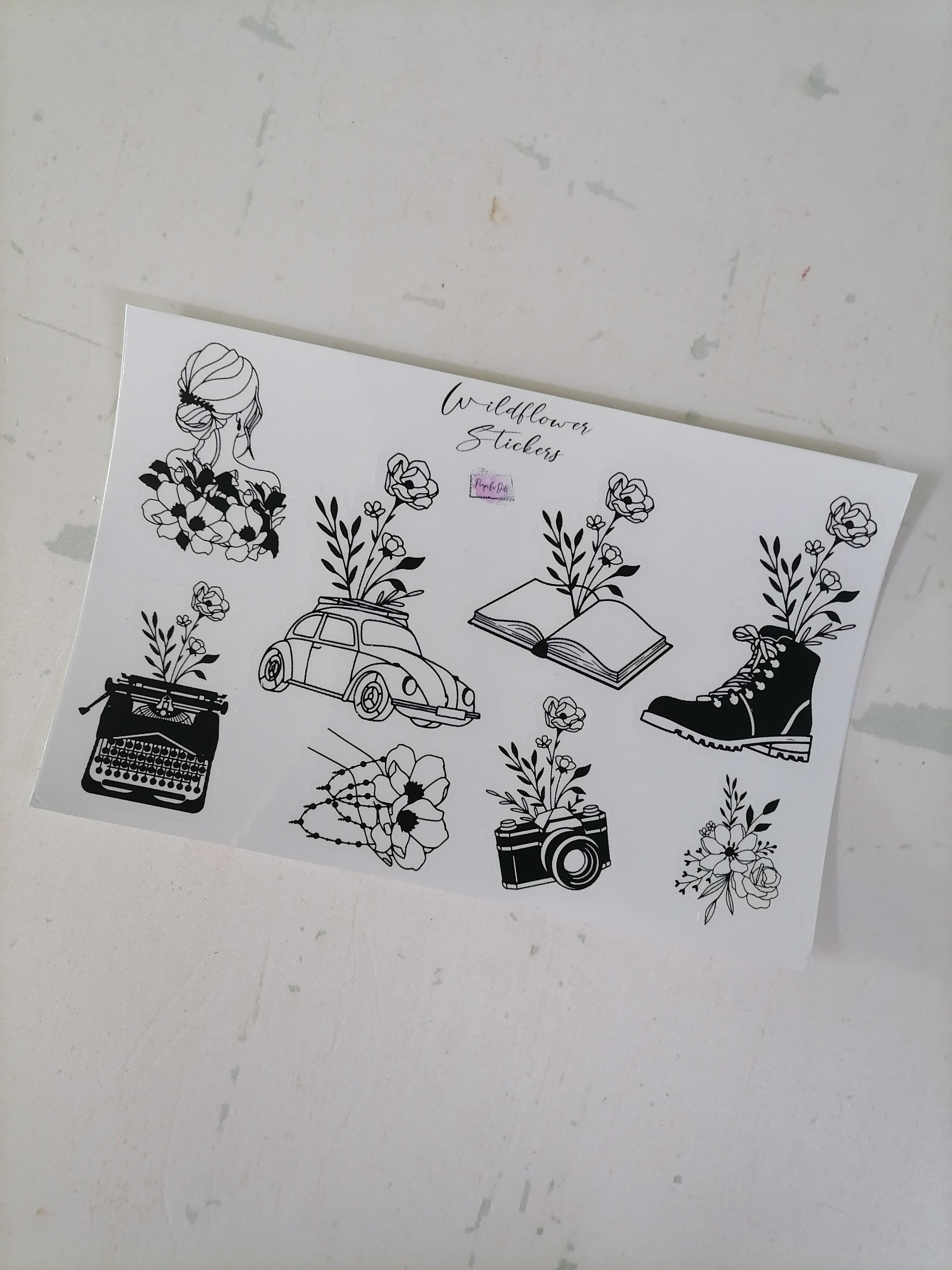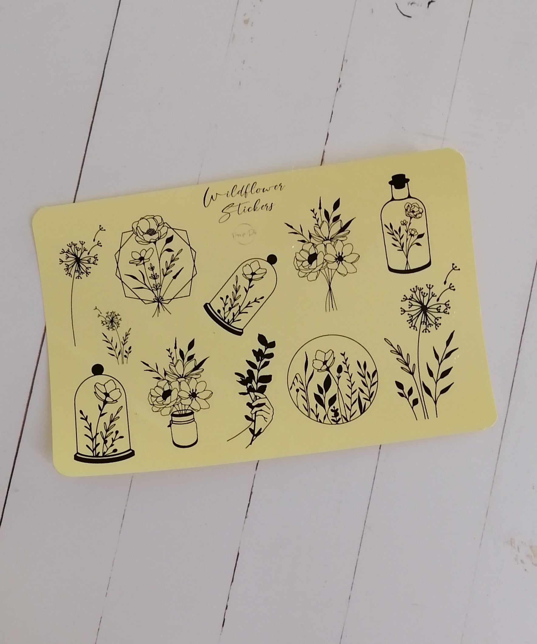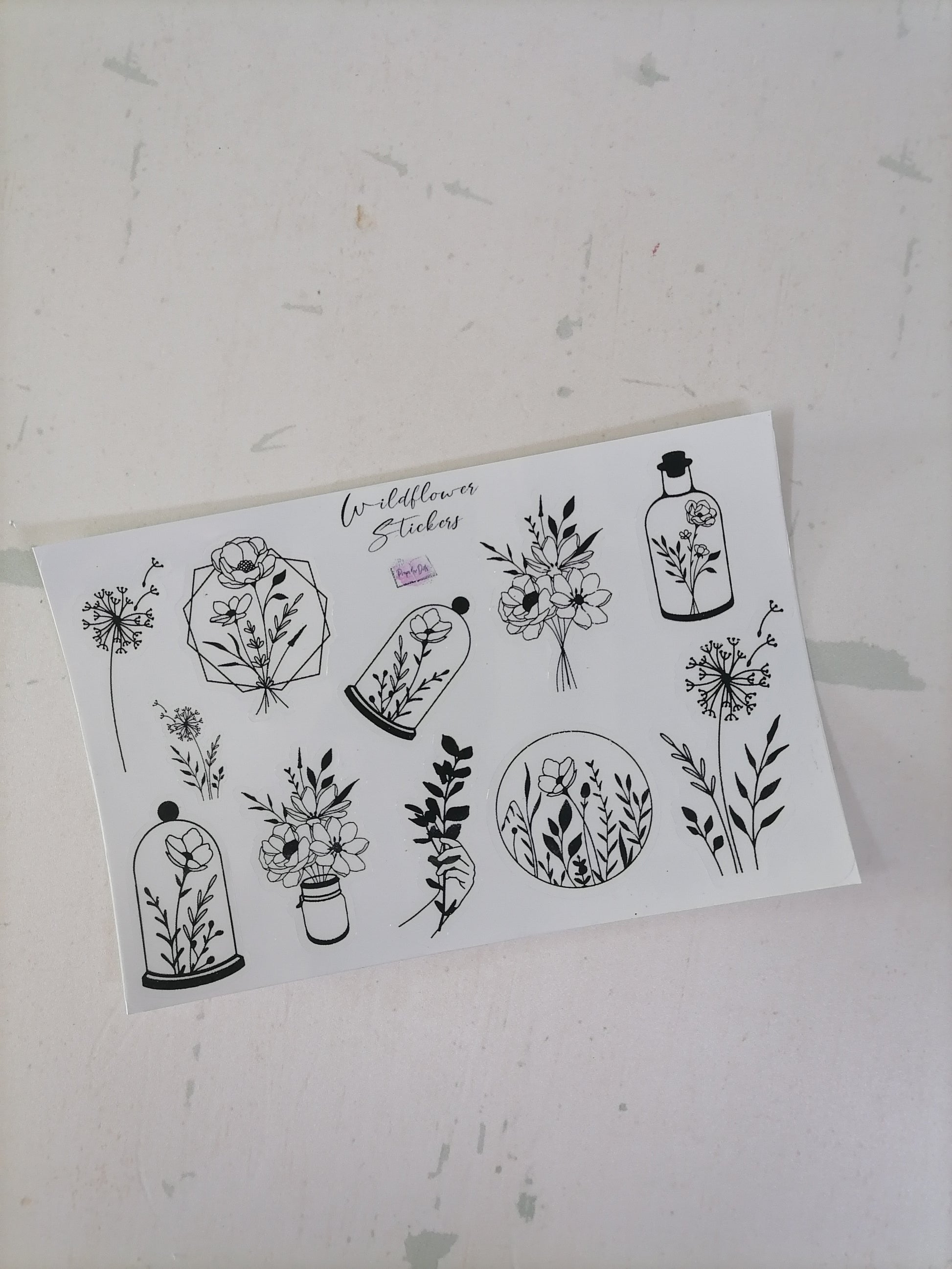 Wildflower stickers are here to make your mark plain wild! With whimsical hand-drawn images featuring wildflowers and plain black lines, you can add your own color and flair, or keep it as simply stunning as can be. Perfect for decoration in planners, journal spreads, and more, they come in clear and thin-clear sticker options! So let your creativity bloom!
